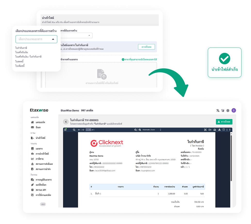 • รองรับการนำเข้าไฟล์ข้อมูลเพื่อสร้างเอกสารภาษีแบบรวดเร็ว